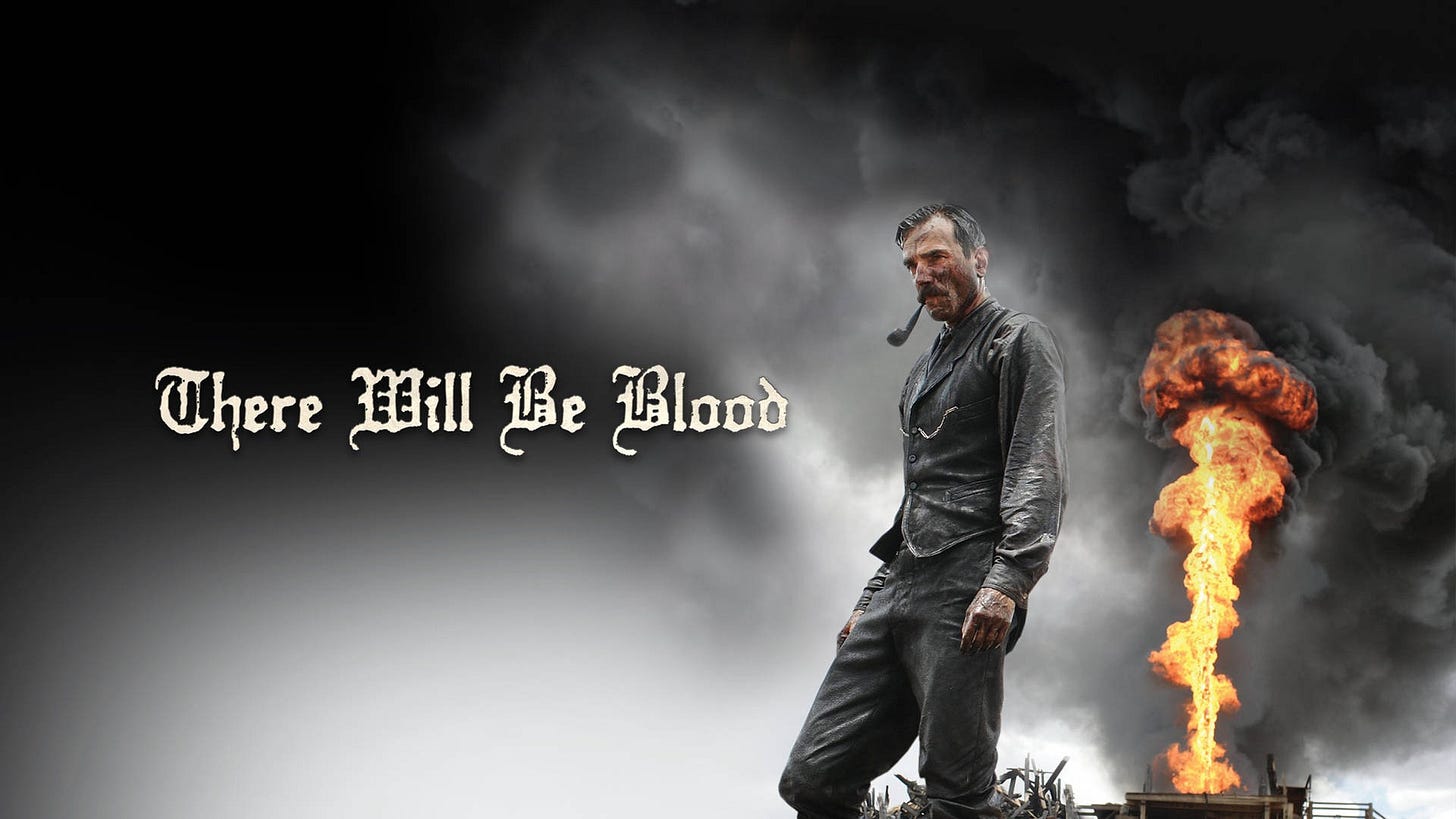 On my first viewing, I was consumed by the story—Daniel Plainview clawing his way to power, the tension with Eli Sunday, the brutality that builds like oil under the ground. It was visceral. I wasn’t thinking about camera angles or motifs. I was just swept up in the hunger and rage. It’s also hard to keep your eyes off DDL in anything he does, so it makes sense if you are completely swept away watching him.